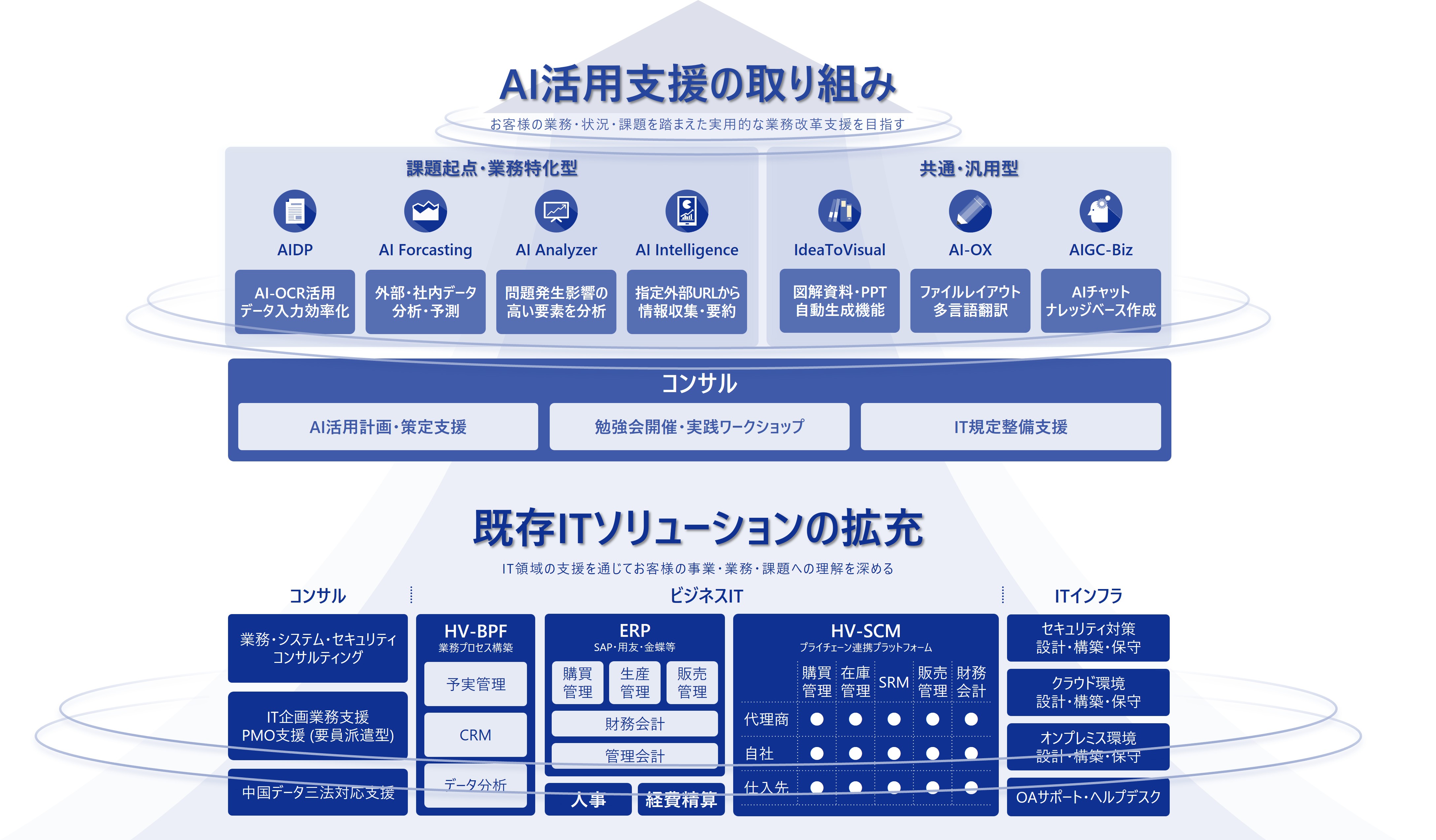 当社は2003年の設立以来、日系企業の中国市場での事業展開とビジネス拡大をIT領域でご支援し、日本本社及び中国現地法人の双方をサポートしてきた知見/経験を活かし、お客様の状況に合わせて柔軟に総合的にご支援できる点を評価頂いております。AI活用に限らず、業務/システム課題がありましたら、資料請求Pageでお気軽にお問い合わせください。/p>